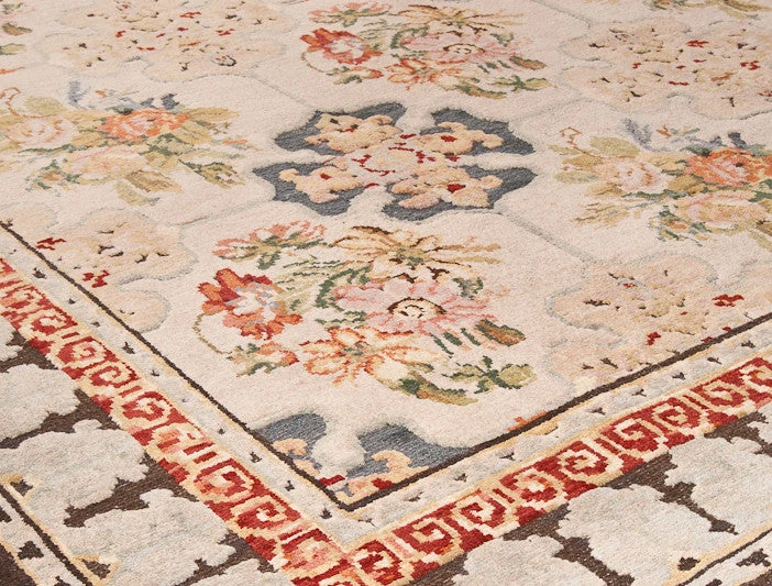 - Using ancient French Savonnerie dyeing and weaving methods and fine hand spun wool yarns, we hand knotted this Oushak pile rug with subtle shade and texture variations rivaling the best antique Oushak rugs.