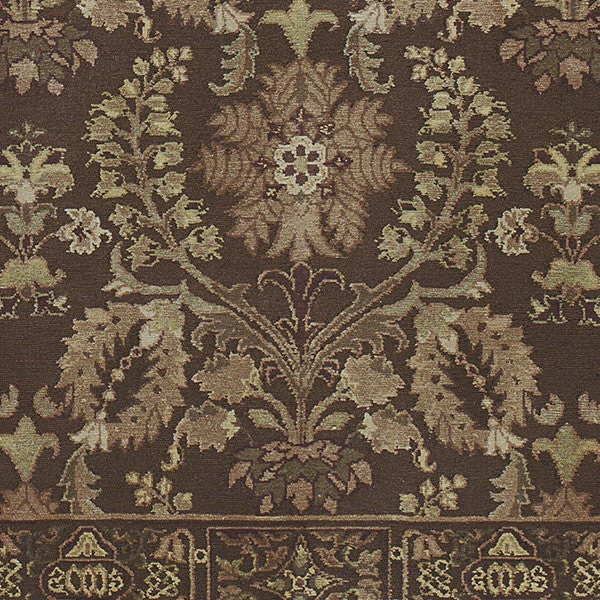 - Based on an original Asmara painting inspired by 17th century Persian silk brocades at the Victoria and Albert Museum in London. The recurring pattern of flower heads cupped inside curving vines is rendered in gold, apple green and touches of eggplant on a dark brown ground.