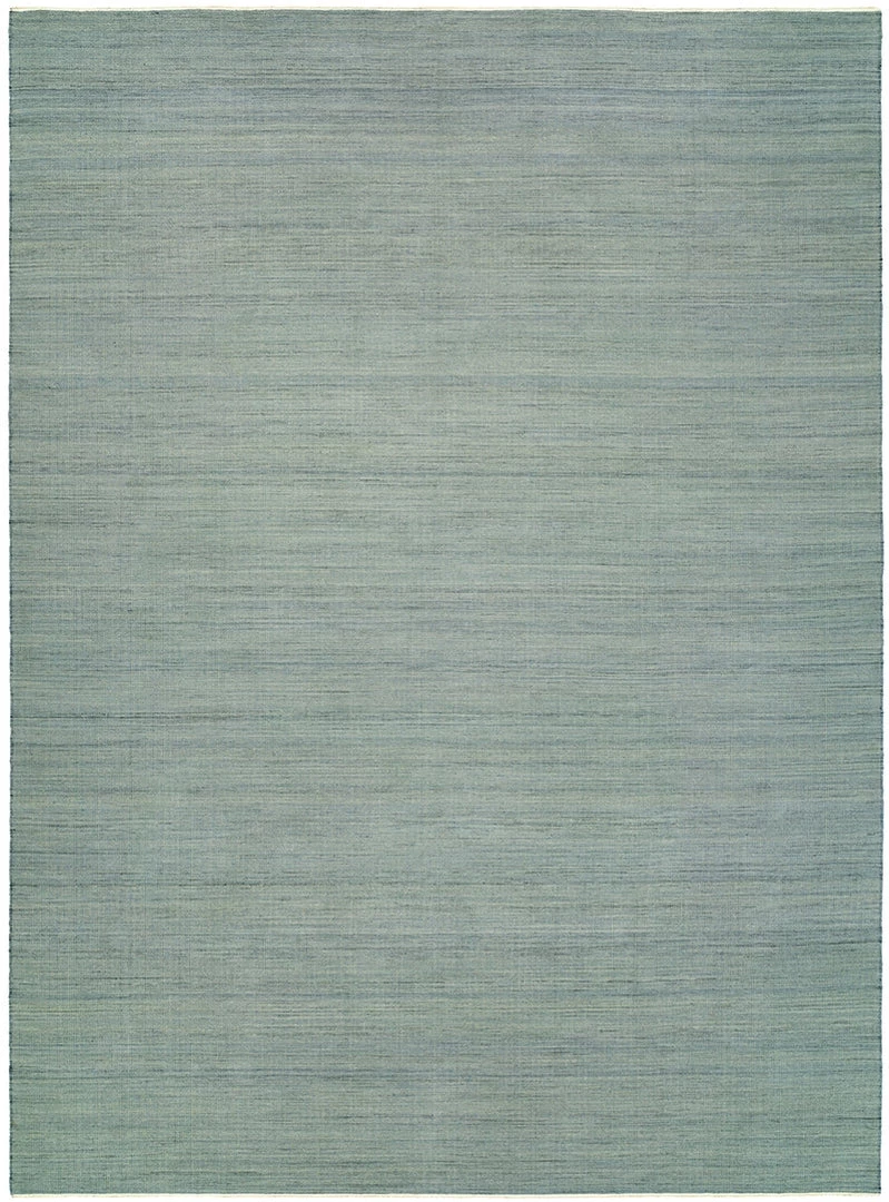 - Calm a room with this heathered blue, aqua and green contemporary wool flat weave rug.