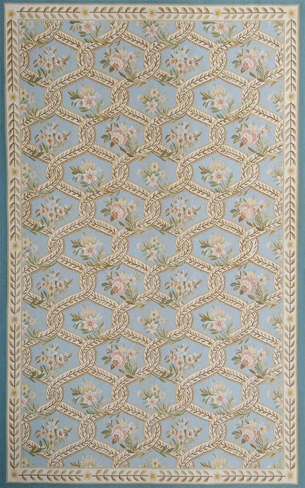 - Savoie is inspired by a 19th century French Aubusson rug. An intertwining cream vine with tiny leaves forms a trellis on a blue field and encloses daisies, roses and leaves in white, rose and yellow-green all within a simple neoclassical leaf border.