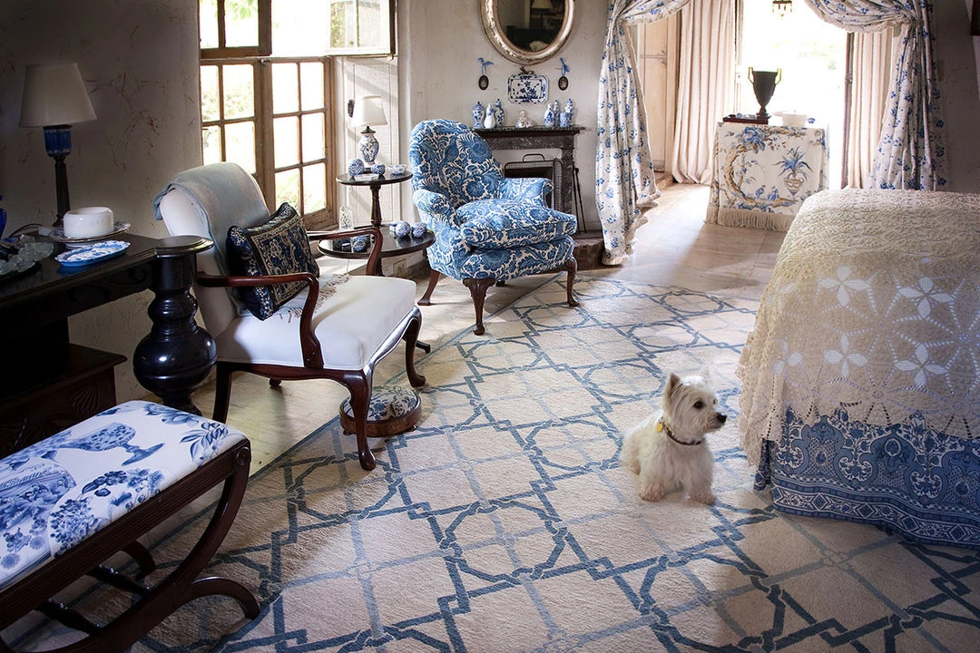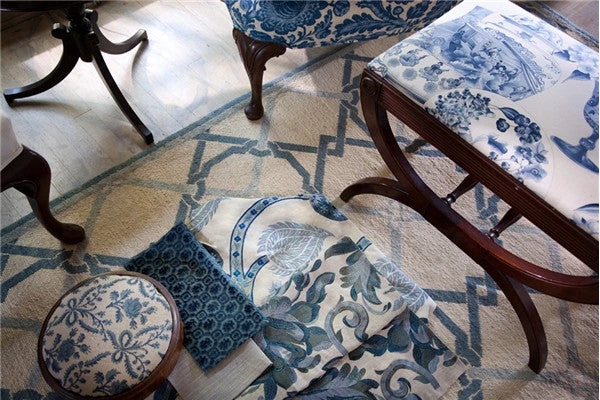 - Based on an original Asmara painting, Ascot interprets how legendary American Interior Designer Billy Baldwin might design a home on the Cote D Azur. A cream background is overlaid with blue geometry reminiscent of marquetry.
