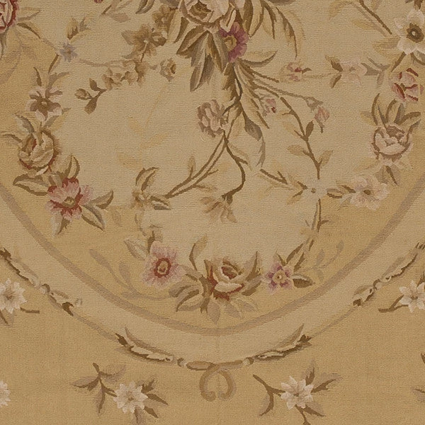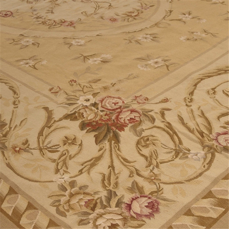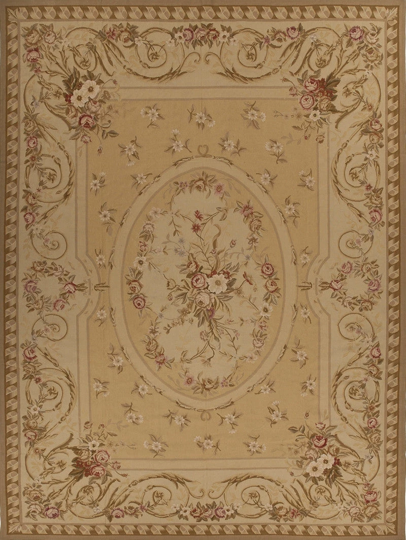 - Based on a 19th century French Aubusson rug, this spare yet elegant design has a straw gold background color overlaid with tonal designs.