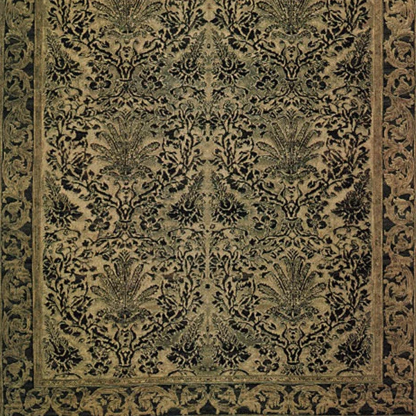 - Based on a 17th century Spanish Renaissance runner rug, espresso black, brown, toast and spruce motifs are colored tonally as in a velvet damask textile.