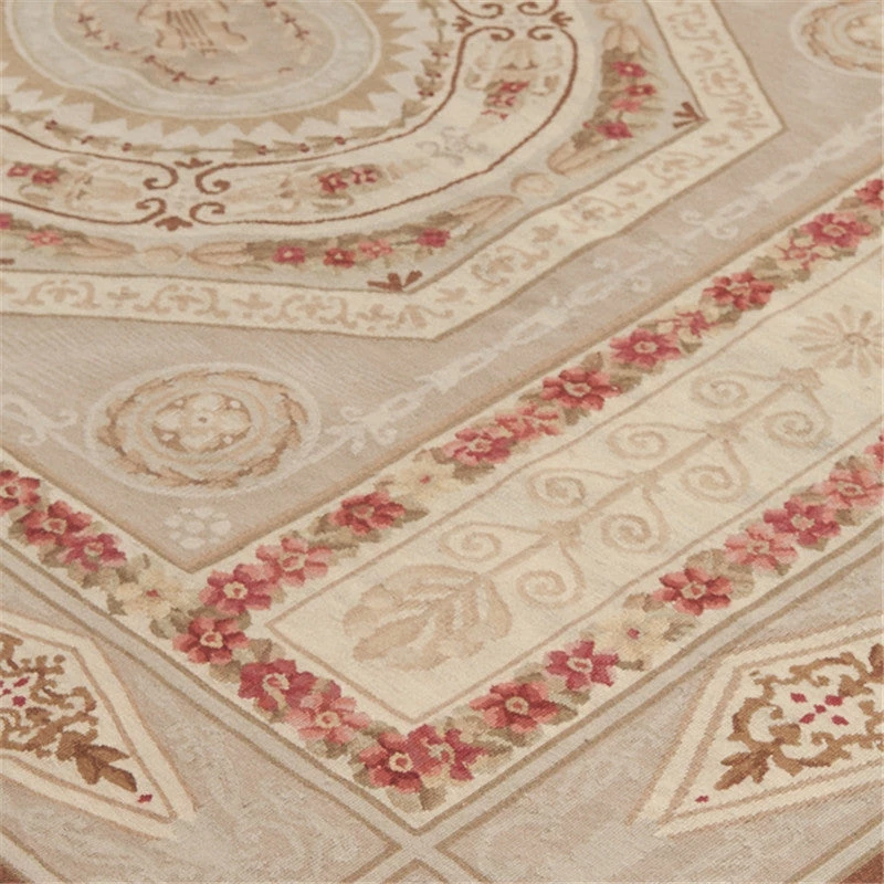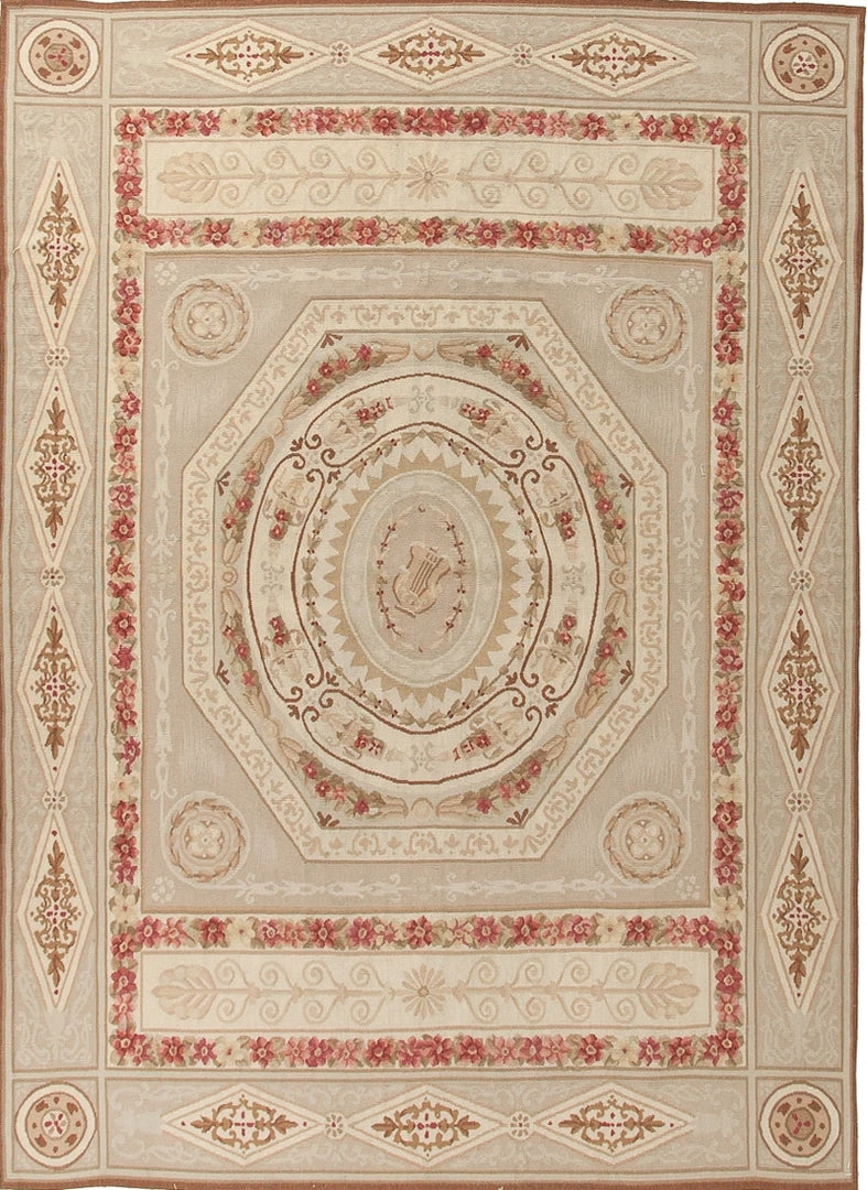 - Made with ancient French Aubusson dyeing and weaving methods, this hand woven Aubusson flat weave rug has thousands of subtle color shades, similar to antique Aubusson rugs.