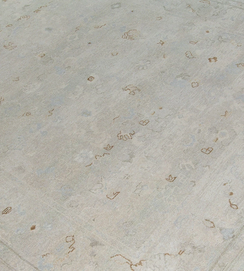 - We used ancient French Savonnerie dyeing methods and fine hand spun wool yarn to create subtle shade and texture variations reminiscent of fine antique Oushak rugs.