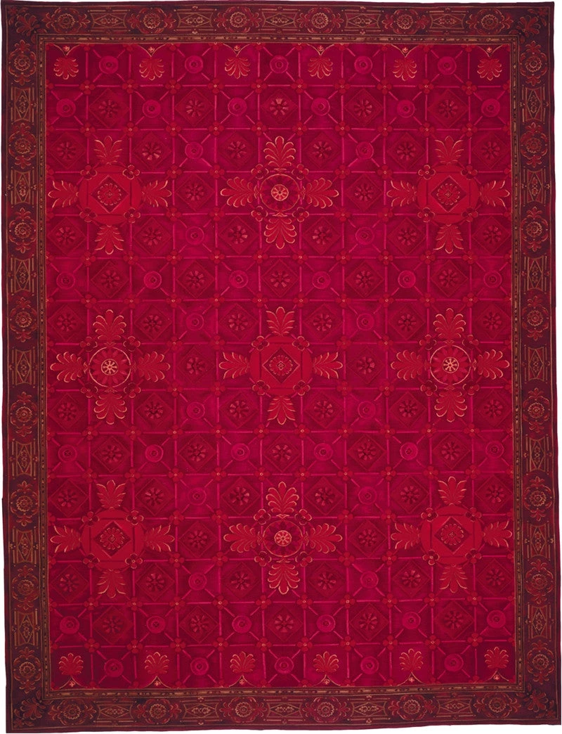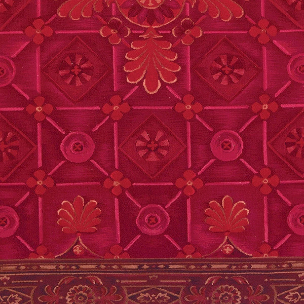 - A thousand tonal shades of reds from ruby to Cabernet are complimented by gold and beige in a design inspired by the French Empire period.