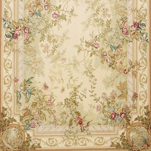 - Made with fine quality wool yarns this hand made Aubusson rug has many subtle color shades similar to antique rugs.